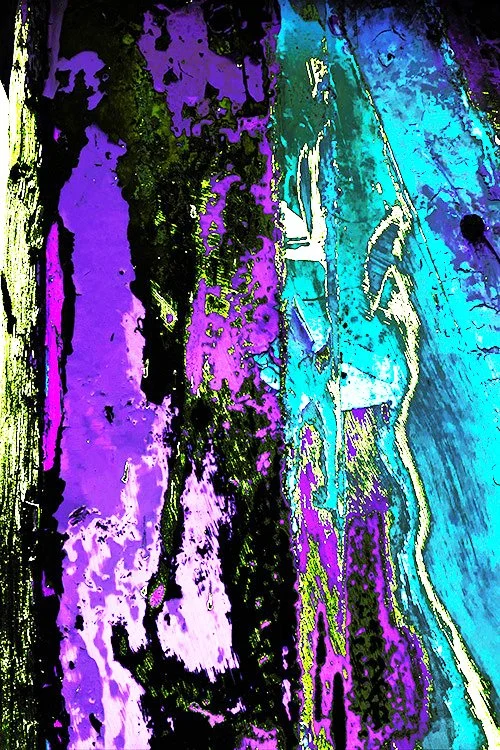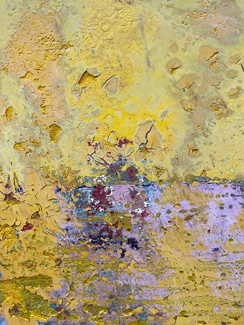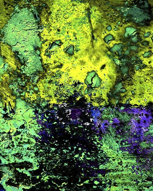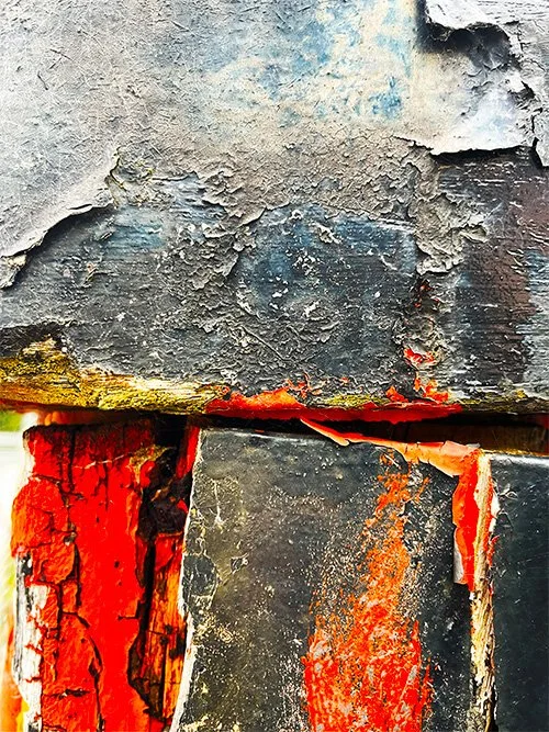 These images are prints developed from photographs of the paintwork of a very old boat waiting for repairs in Clifden harbour!
